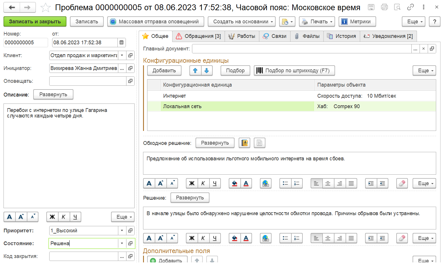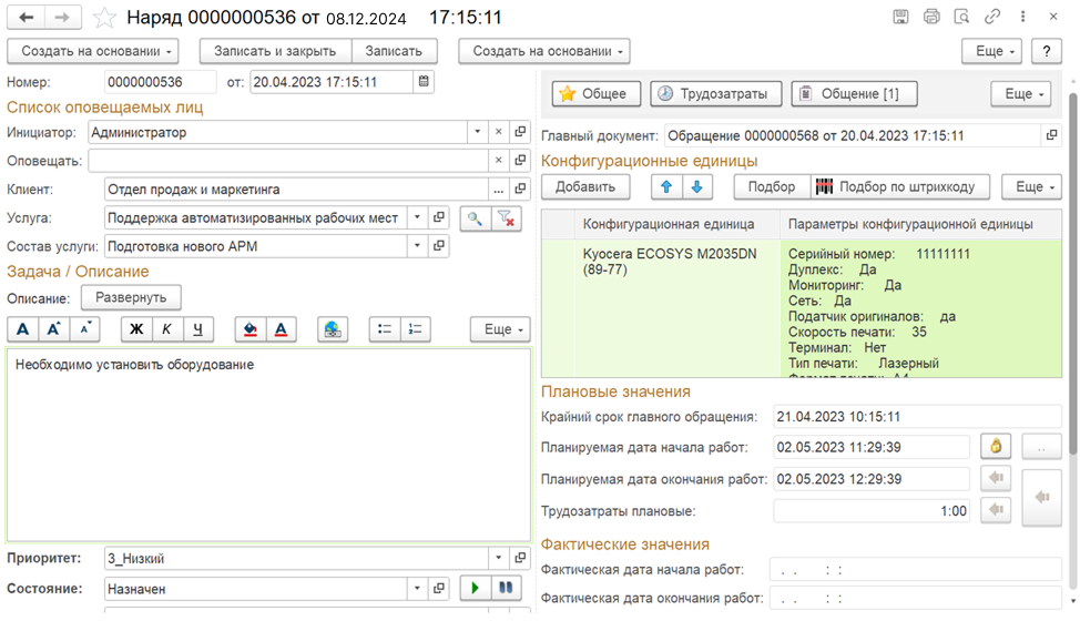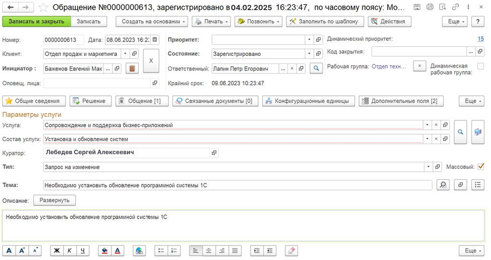 Регистрация и учет инцидентов и заявок, обработка обращений в установленные сроки по SLA, обеспечение поступления обращений через единую точку контакта, распределение нагрузки и контроль работы сотрудников сервисных подразделений, использование инструментов для автоматической регистрации и эффективного управления обращениями.