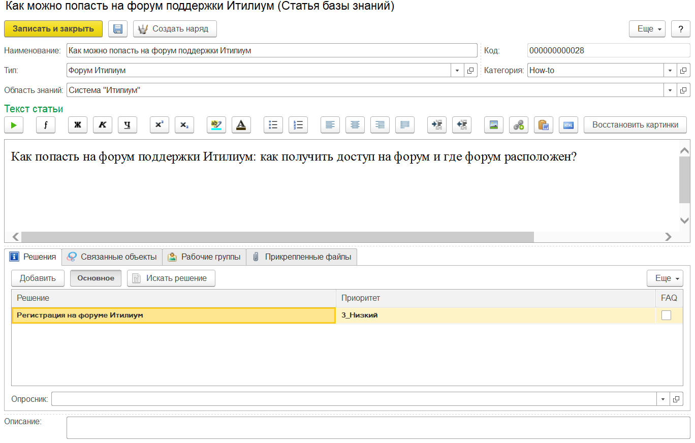 Возможности 1С Itilium: