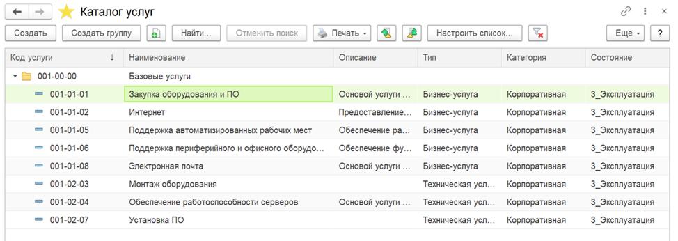 Создание каталогов услуг и SLA типового шаблона формируется каталог ИТ-сервисов и настраиваются соглашения об уровне обслуживания