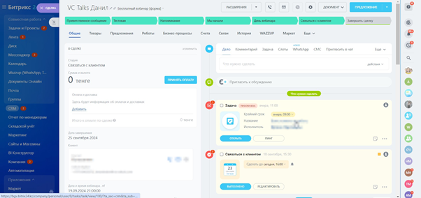 По завершении вебинара система автоматически создаёт задачи для менеджеров. Процесс позволяет оперативно связаться с каждым участником, обсудить дальнейшие шаги и предложить покупку курсов. В случае успеха менеджеры могут оперативно конвертировать лид в сделку, что значительно ускоряет оформление продажи.