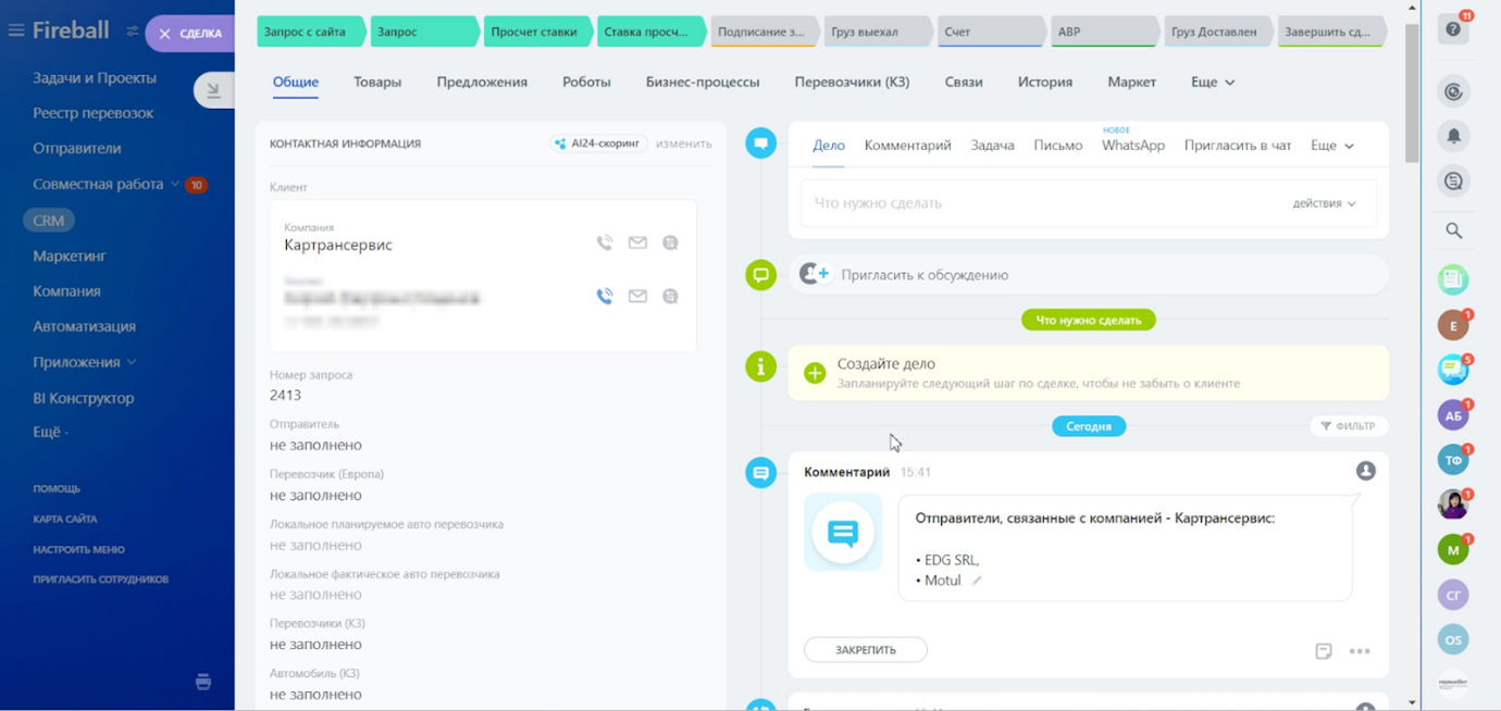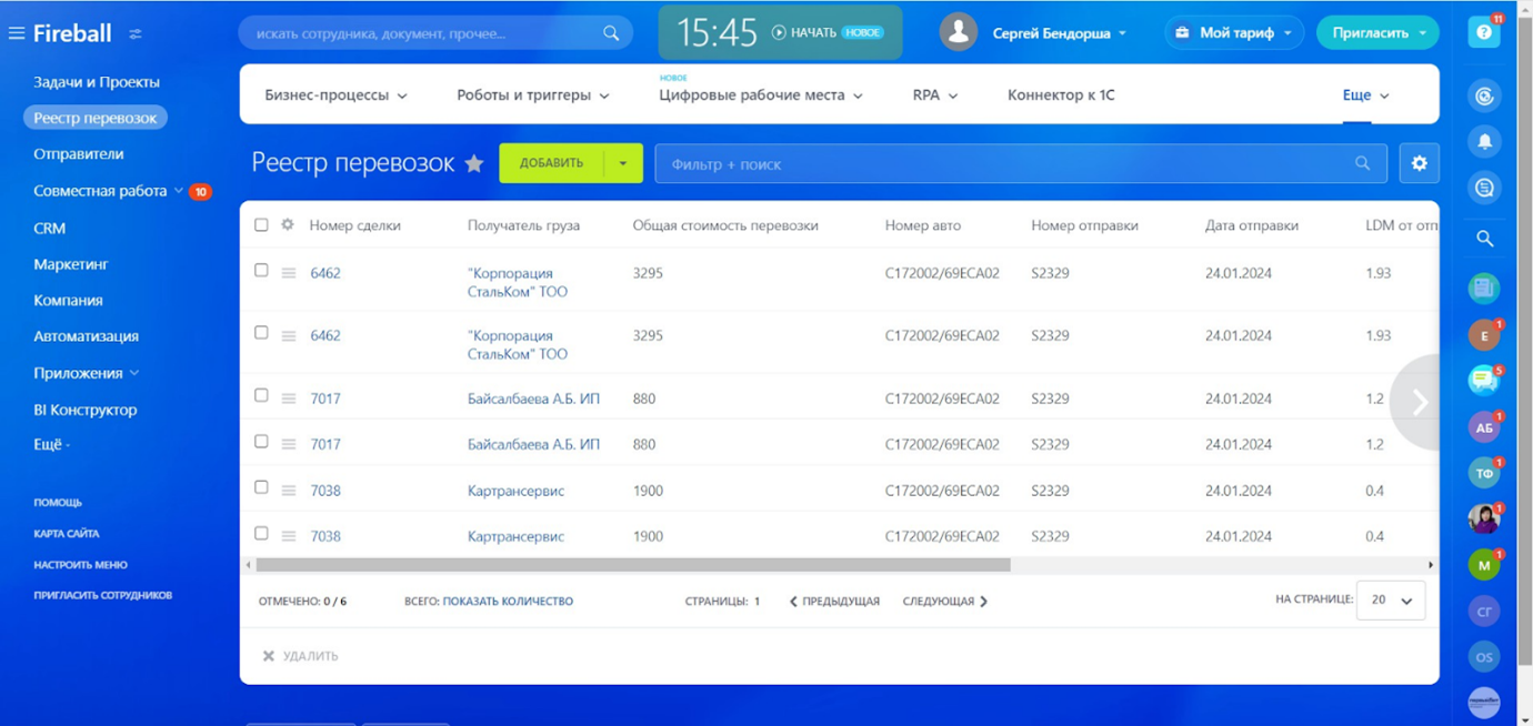 Автоматизация логистики для грузоперевозчика Fireball в Казахстане на базе Битрикс24