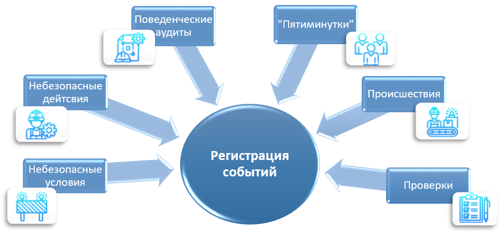 Основным узким местом проекта стал блок регистрации событий, поскольку типовой функционал не в полной мере предоставлял возможности для любого сотрудника сообщить о небезопасном событии или происшествии во время рабочего процесса.