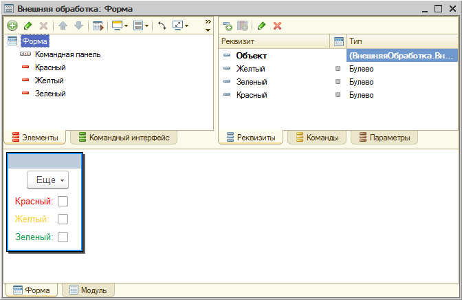 Идея проста – мы имеем 3 реквизита типа «Булево»: