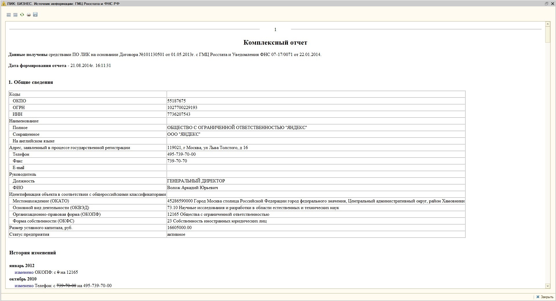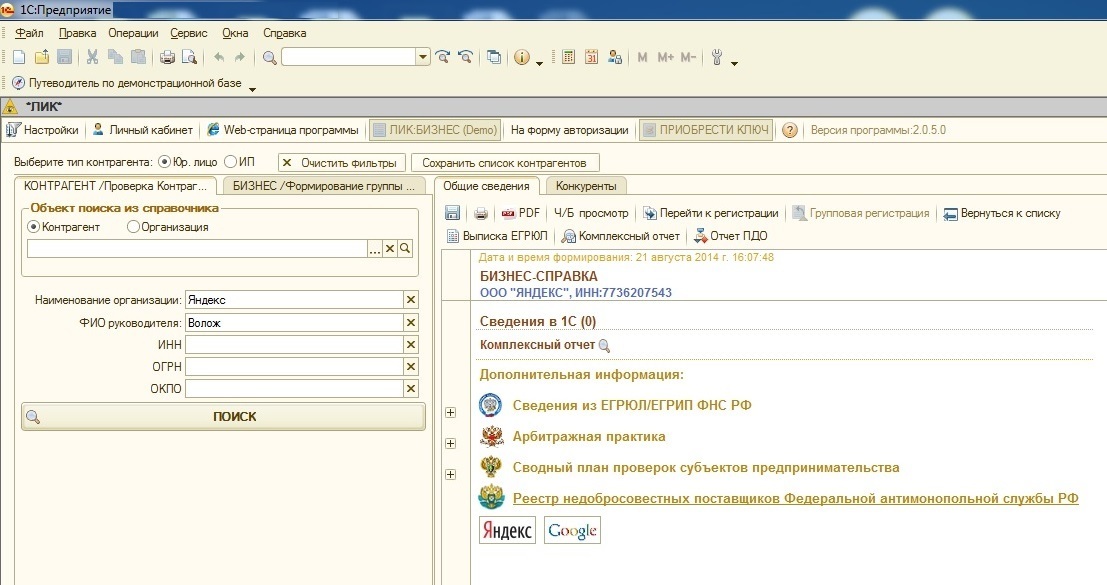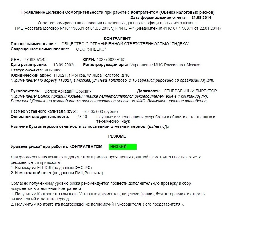 Сервис содержит всю необходимую информацию о компании или ИП, с которыми вы планируете сотрудничать: