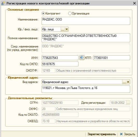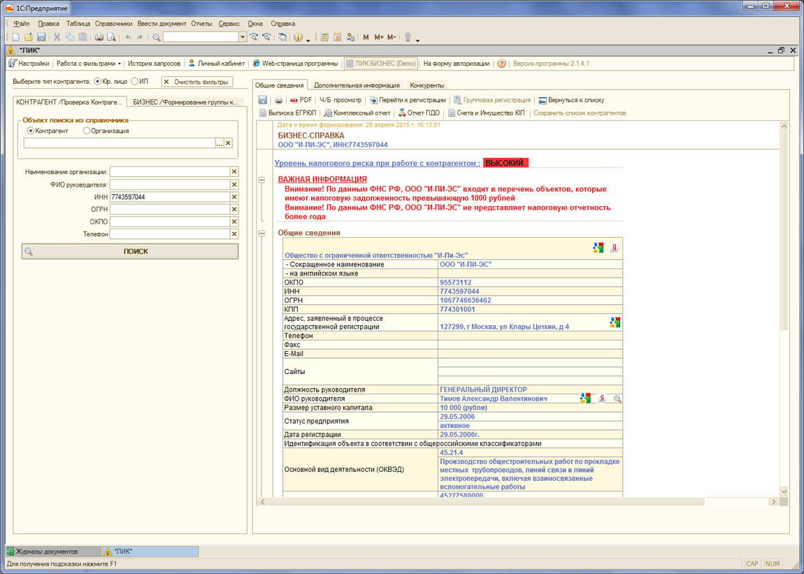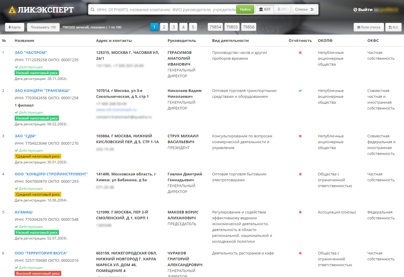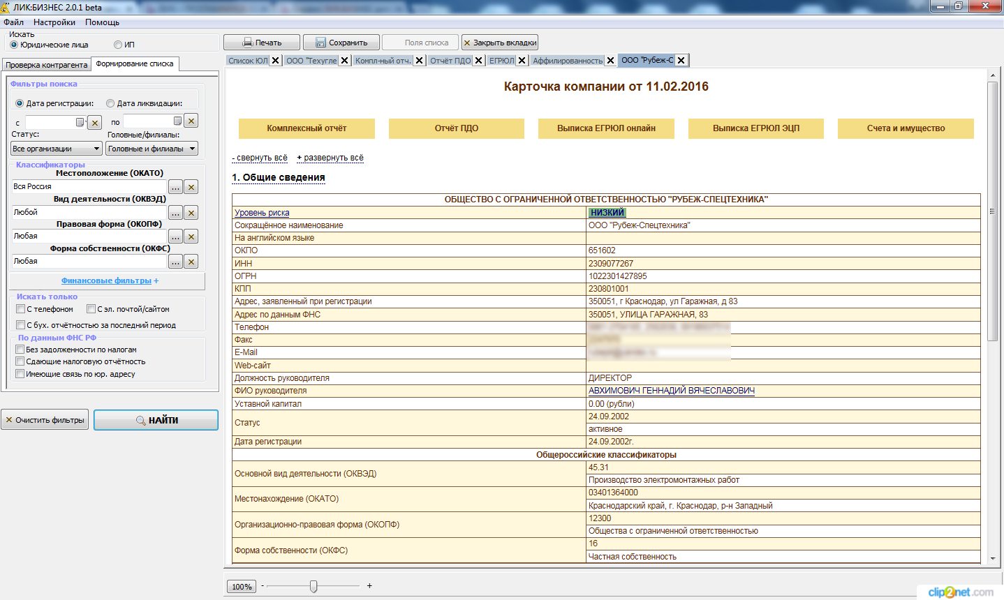 Сервис содержит всю необходимую информацию о компании или ИП, с которыми вы планируете сотрудничать: